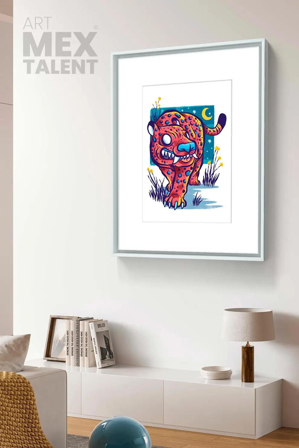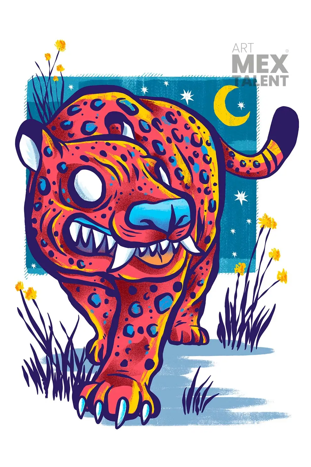 A piece inspired by the majesty of this mythical being. Perhaps a nagual or a spirit guide that roams the landscapes of Mexico. The digital technique can be seen playing with airbrushing nuances and irregular lines, giving it a unique style.